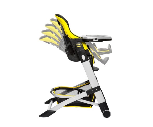 Description Make mealtime your favorite time with the KidsEmbrace Batman Deluxe High Chair. The multifunctional design provides maximum comfort for your child with a reclining backrest and adjustable footrest. This high chair can be used from the time your little one joins the family well into their toddler years. The different height positions allow for the chair to fit right next to the table when your toddler is ready to eat at the table with the family. Cleanup is a breeze with a removable tray and premium easy to wipe fabric. The ultra-compact fold allows for easy storage when you're ready to reclaim your kitchen. The KidsEmbrace deluxe Batman high chair will be the perfect gift along with other KidsEmbrace accessory items. The size of the high chair is Width 21.5" Height 42.5" and Length 29.9". All KidsEmbrace deluxe high chairs come with a One-Year Limited Warranty.Dimensions (Overall): 42.5 inches (H) x 21.5 inches (W) x 29.9 inches (D)Suggested Age: 0-5 yearsWeight: 26.5 poundsFeatures: Reclining seat, wheels, removable tray, adjustable height, folds for easy transport and storage, safety harness, one-hand tray removalIncludes: 1 Tray, 1 Tray Liner, Seat PadPattern: Printed patternAssembly Details: No assembly requiredCertifications: Meets ASTM StandardsSafety and Security Features: 3-point HarnessHolds up to: 40 poundsMaterial: MetalCare & Cleaning: Dishwasher-safeWarranty: 1 year limited warranty. To obtain a copy of the manufacturer's or supplier's warranty for this item prior to purchasing the item, please call Target Guest Services at 1-800-591-38696 seat height positions for adjusting to the perfect position to feed your childLarge front wheels make moving easyOne hand tray release & removable tray and premium fabric makes cleaning a breezeTested to the highest government standardsOne-Year Limited Warranty Estimated shipping dimensions: 29.9INCH X 42.5INCH X 21.5INCH DPCI : 030-09-5078 UPC : 811722011010 TCIN : 76150666 Estimated shippimg weight: 26.5POUND