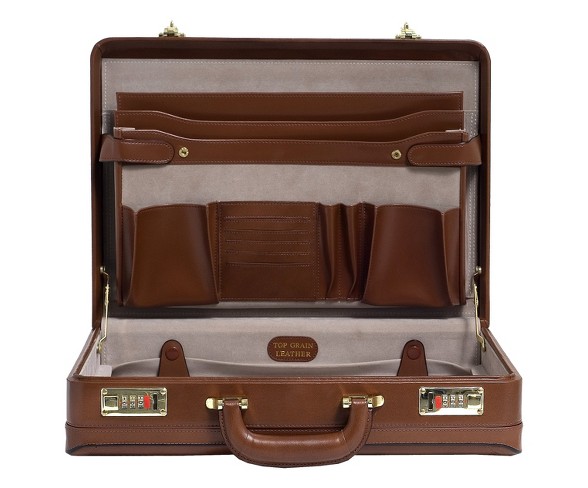 Description Keep yourself organized without compromising style with this leather attaché case by McKlein. This attaché case features an organizer pocket for important items and a built-in lock to keep your belongings secure.Dimensions (Overall): 13.0 inches (H) x 18.0 inches (W) x 4.5 inches (D)Weight: 5.2 poundsShell Material:: LeatherLiner Material: PolyesterBag Structure: Structured, hardsideExterior Features: Built-in LockMain Compartment Closure:: Latch ClosureHandle Type: Adustable Shoulder Strap, Comfort-grip HandleHandle Material: LeatherCompartment details: Interior accessory pocket, Interior padded tablet compartmentUsed For: BusinessCare & Cleaning: Spot or wipe cleanWarranty: Lifetime limited warranty. To obtain a copy of the manufacturer's or supplier's warranty for this item prior to purchasing the item, please call Target Guest Services at 1-800-591-3869Warranty Information:To obtain a copy of the manufacturer's warranty for this item, please call Target Guest Services at 1-800-591-3869.Vintage style business caseLatch closure type with built-inlockLeather shell and lining materialComfort grip handle for easy carrying Estimated shipping dimensions: 15.0INCH X 6.0INCH X 19.0INCH DPCI : 069-04-0249 UPC : 642154804648 TCIN : 13618421 Estimated shippimg weight: 6.0POUND