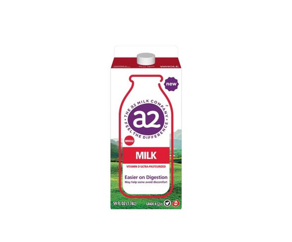 Description Ordinary cows' milk contain a mix of both A1 and A2 proteins. Yet, only a2 Milk comes from cows selected to naturally produce only A2 protein and no A1 - and that makes all the difference. Independently published research support that the A1 protein in ordinary cows' milk might cause discomfort in some of us. If that's you, a2 Milk may help. But for the unique benefits of a2 Milk to work it needs to be the real deal - true a2 Milk, from cows that naturally produce only the pure A2 protein and none of the A1.a2 Milk Whole Milk is perfect in milkshakes, coffee, on cereal, in cooking, or simply by the glass.Contains: MilkMay Contain: Does not contain any of the 8 major allergensStore: In a Refrigerated location at RefrigeratedFeatures: No added antibioticsForm: LiquidState of Readiness: Ready to drinkPackage type: Individual item multi-servingExterior container material: Paper or cardboardMilk fat level: WholeNet weight: 59 fl oz (US)Package Quantity: 1Beverage container material: Paper or cardboardVitamin D Ultra-PasteurizedWhole MilkNaturally easy to digest Estimated shipping dimensions: 3.8INCH X 9.5INCH X 3.8INCH DPCI : 284-06-0140 UPC : 813267020007 TCIN : 51341947 Estimated shippimg weight: 3.688POUND