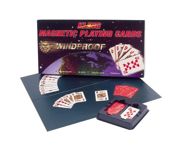 Description Your next picnic may be ruined by an invasion of ants, but it won't be because the breeze ended your card game early. Here is a great innovation for card players who want that play-anywhere ability. Kling Magnetic Playing Card Game set lets your cards stay put as you play on the road, outdoors, even in bed. Stands up to jarring motion, tilting surfaces, and wind. Includes magnetic folding game board, and one deck of magnetic cards. Board measures 20"x20".Suggested Age: 5 Years and UpType of Game: Classic gamesPlaying Time: 30 Minutes or LessIncludes: CardsLevel of Difficulty: EasyPackage type: Full gameNumber of Players: 1 or More PlayersContents include: magnetic folding game board, and one deck of magnetic cardsFor 1 or more playersAges 5 and upMade in USA Estimated shipping dimensions: 10.3INCH X 1.5INCH X 20.5INCH DPCI : 087-10-0131 UPC : 024603000557 TCIN : 52715715 Estimated shippimg weight: 3.0POUND