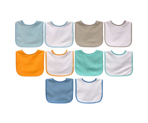 Description This Neat Solutions 10 pack solid bib set is a must-have for mealtimes. These soft, terry-knit bibs will protect baby's clothes from the spills and splatters that are bound to happen during feeding with it's water-resistant inner core. The simple hook and loop closure makes for easy on and off as well as provide a secure fit. Machine washable.Number of Pieces: 10Dimensions (Overall): 11.5 inches (L) x 7.5 inches (W)Suggested Age: 3-24 monthsIncludes: BibMaterial: PolyesterCare & Cleaning: Do not iron, machine wash, non chlorine bleach when needed, machine dry, close before washingWater resistant inner core10pk value setHook and loop closure for easy on and offMachine washable Estimated shipping dimensions: 7.874INCH X 1.4961INCH X 11.1024INCH DPCI : 030-05-4491 UPC : 014681011408 TCIN : 52829765 Estimated shippimg weight: 0.3527POUND
