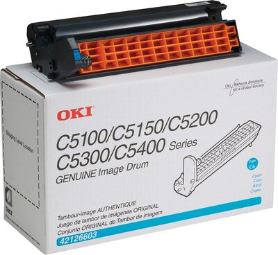 Description OKI® Drum cartridge in cyan color is used to deliver superior printing quality for all important documents, photos and graphics without toner. OKI® Drum cartridge in cyan color produces richer, deeper colors and delivers superior results for all your printing needs. Drum cartridge is commonly found in non-color copy machines and laser printers. OKI® 42126603 cyan image drum Offers up to a 15,000-page yield @ 5% coverage Yields up to 15,000 pages For use with Oki® C5100, C5150, C5200, C5300, C5400 Specifications Cartridge Series : Oki C5100/C5150/C5200/C5300/C5400 Yield Type : Unknown Page Yield (Up to) : Unknown Ink/Toner Color : Cyan Ink/Toner Pack Size : 1/Pack Ink/Toner Cartridge Type : Original Wide Format Compatibility : No High Yield : No Multipack : No Brand : Oki Customizable : No Weight : 3.66 lbs. per Each Compatible Printers This product is compatible with these printers: OKI C5100n C5300n C5200n C5400 C5400dn C5400dtn C5400n C5400tn C5150n C5510n MFP US Model