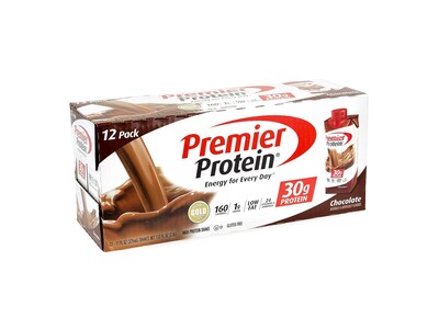 Description Get a great-tasting drink in convenient packaging with these Premier Protein chocolate protein shakes. Replace a meal or enjoy a snack with these protein shakes. Each one provides 60 percent of your daily value for protein, and each box contains 12 Premier Protein chocolate shakes, making it the perfect size for stocking the break room. Protein shakes are a delicious meal replacement or snack that contains plenty of vitamins and minerals Comes in capacity of 11 fl. oz. 12 count box The product is kosher Protein aids the creation and maintenance of bones, muscles, cartilage, skin, and blood Specifications Brand : Premier Protein Customizable : No Weight : 8.25 lbs. per Each