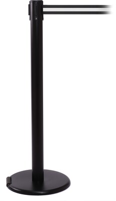 Description RollerPro 250 Black Rolling Retractable Belt Barrier offers precision retracting spring unit that allows 2" standard belt to extend from 0' to 11'. RollerPro 250 Black rolling retractable belt barrier is made of 0.055 ga durable steel/stainless steel with cast iron base for stability. Belt barrier measuring 40" x 2 1/2" Dia has 11' heavy-duty woven nylon black/white belt for safety. Belt Color: Black/White Black stanchion barrier post Post dimensions: 40"(H) x 2 1/2"(Dia) Simple assembly, no tools required Post material: 0.055 Gauge Steel/Stainless Steel with Cast Iron base Belt length: 11' Belt material: Heavy Duty Woven Nylon Specifications Print/Message Color : Other Height : 40" Length : 11' Base Diameter : 14" Post Diameter : 2 1/2" Type : Rolling Retractable Brand : RollerPro Customizable : No Weight : 1.00 lbs. per Each