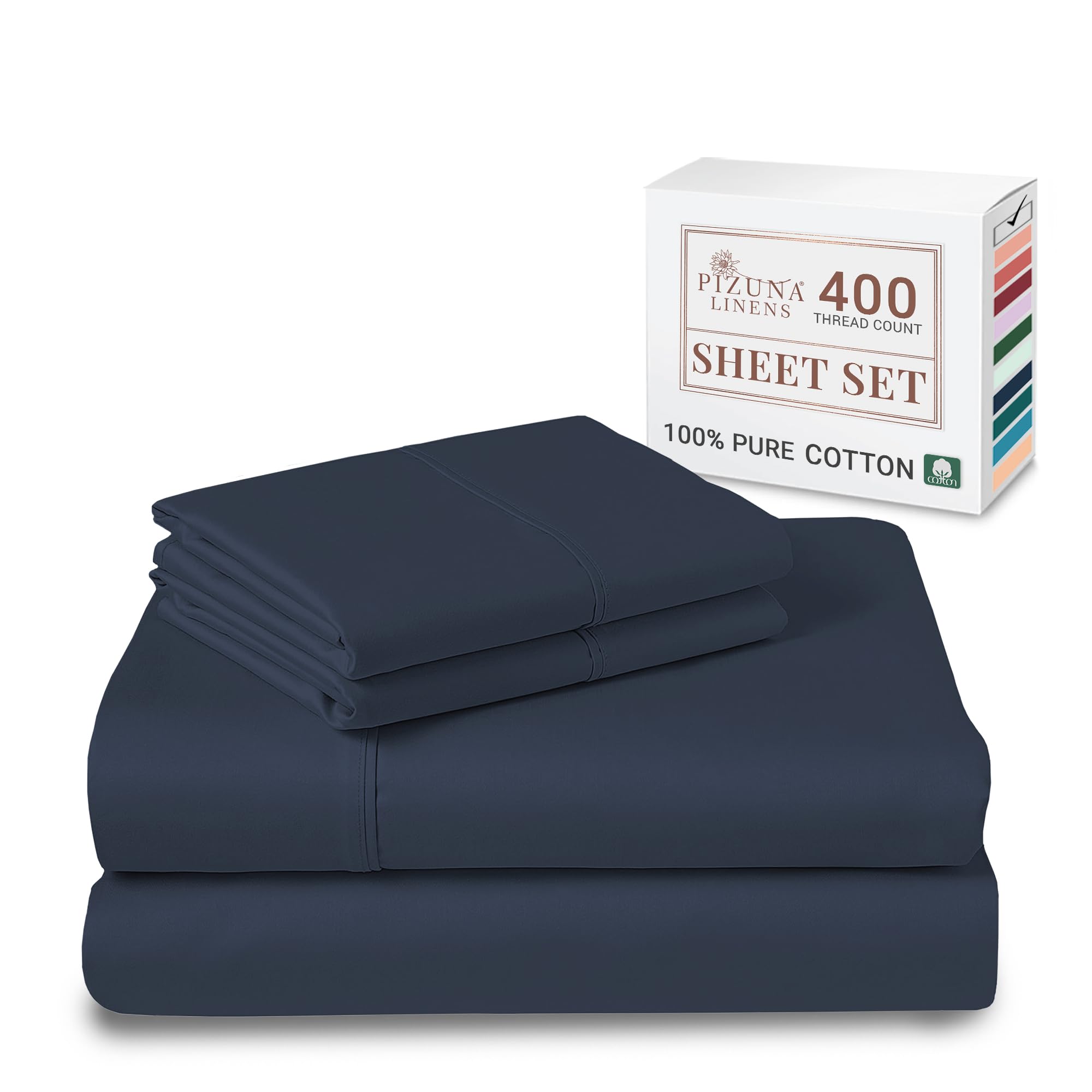 Pizuna Pure 100% Cotton Sheets offer a luxurious sleeping experience with a 400 thread count and deep pocket design, ensuring a perfect fit for king-sized mattresses. Made from 100% long-staple combed cotton, these sheets are breathable, moisture-wicking, and eco-friendly, certified by OEKO-TEX. With patented stitching for durability and a stylish piped hem, they combine elegance with comfort, making them an ideal choice for a restful night's sleep.