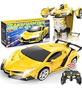 The Dolanus Remote Control Car-Transform Robot is a vibrant yellow 1:18 scale RC vehicle designed for kids aged 6-12. Featuring dual rechargeable and AA batteries for up to 120 minutes of continuous play, it boasts 2.4GHz anti-jamming remote control technology allowing multiple cars to race simultaneously without interference. With a one-button transformation from car to robot and 360° high-speed drifting enabled by a unique 5-wheel design, this ready-to-use toy offers an immersive and dynamic experience, making it an ideal gift for birthdays and holidays.