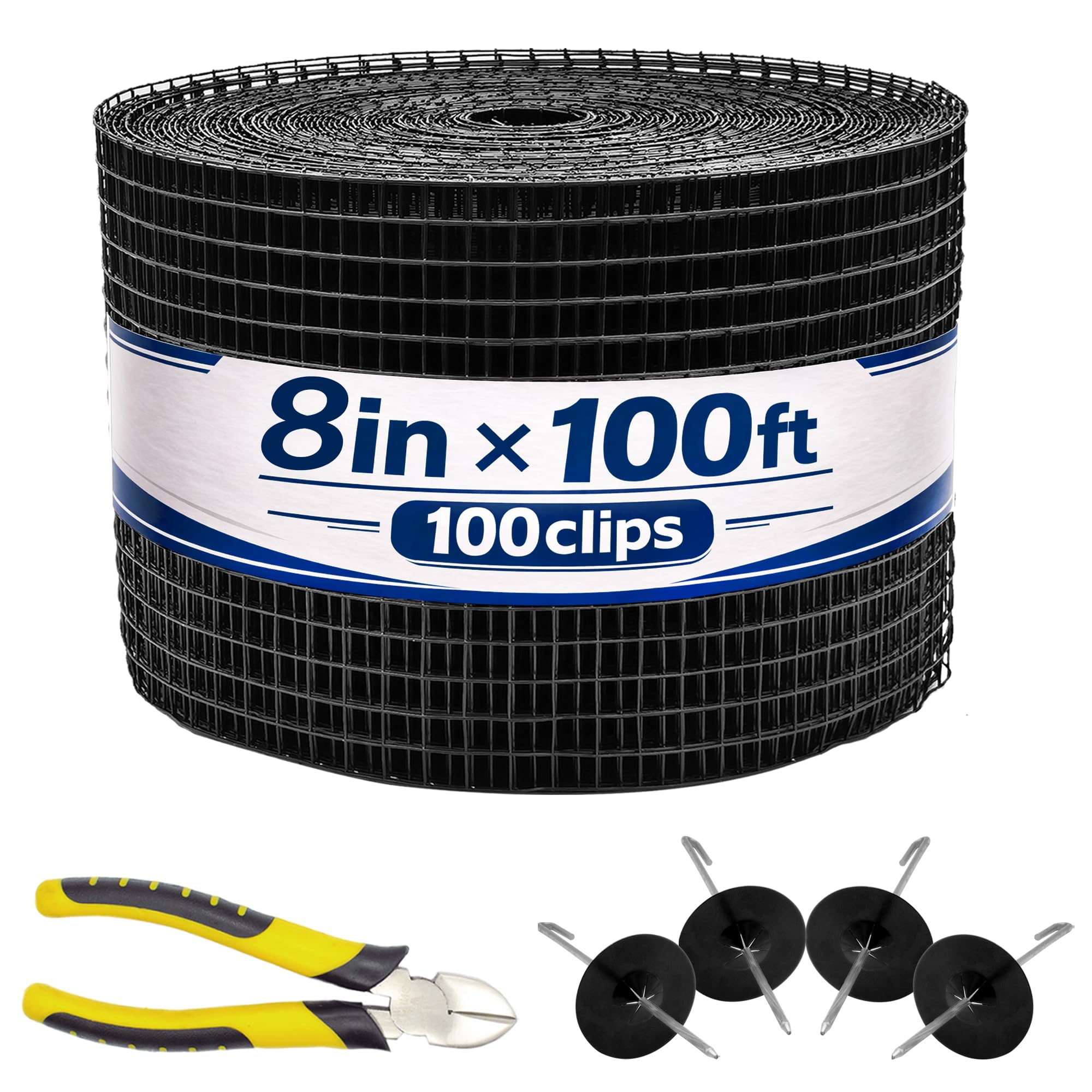 This 8 inch by 100 feet galvanized steel mesh with 1/2'' openings is designed to prevent birds and critters from nesting under rooftop solar panels. Coated in black PVC, it offers superior rust and weather resistance. The kit includes 100 fastener clips and a heavy-duty cable cutter for easy, secure installation and damage-free removal, ensuring long-lasting protection and optimal solar panel performance.