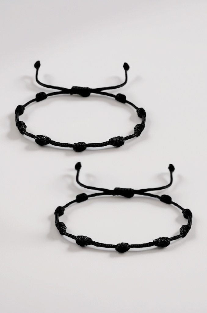 The ARTIFICIAL TREE Nazar Dhaga Bracelet and Anklet Set features adjustable black threads with knotted beads, combining traditional evil eye protection with modern, unisex style. Lightweight and durable, this set offers both a bracelet and anklet designed to fit all ages and sizes, making it a versatile accessory that blends cultural significance with everyday fashion.