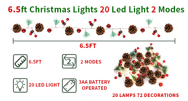 The Yoawllty Christmas Decorations feature a 6.5FT battery-operated garland adorned with 20 warm white LED lights, red berries, and bells. Perfect for both indoor and outdoor use, this versatile decoration can be shaped to fit any space and is ideal for various festive occasions, including Christmas and Thanksgiving.
