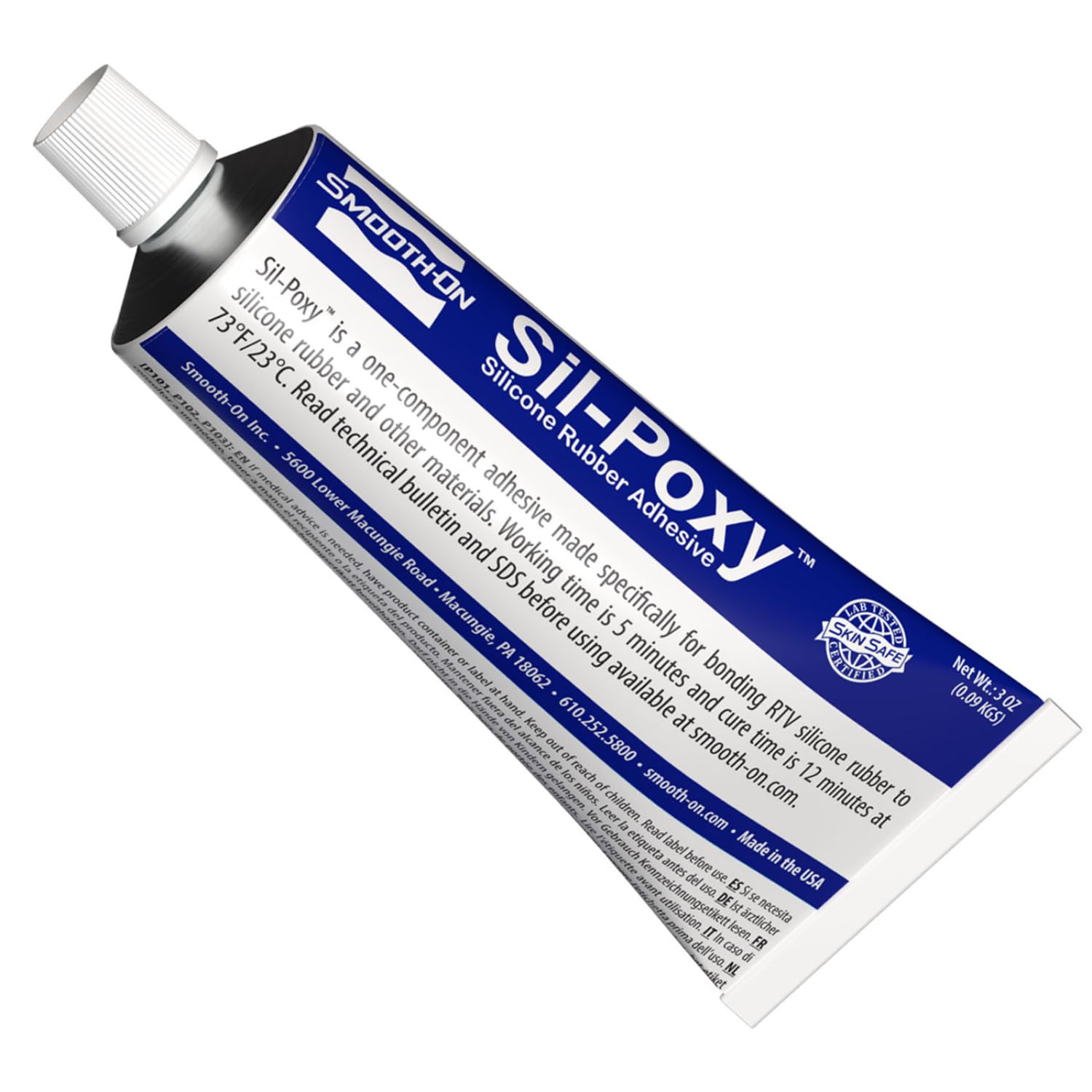 Sil-Poxy Silicone Adhesive by Smooth-On is a professional-grade, one-component adhesive designed for bonding RTV silicone rubber to a variety of substrates including plastics, ceramics, and fabrics. It cures quickly in 12 minutes, forming a strong, flexible, and durable bond that resists heat, chemicals, and water. Ideal for detailed repairs and creative projects, this low-viscosity adhesive comes in a convenient 3-ounce tube, making it a must-have for DIY enthusiasts and professionals alike.