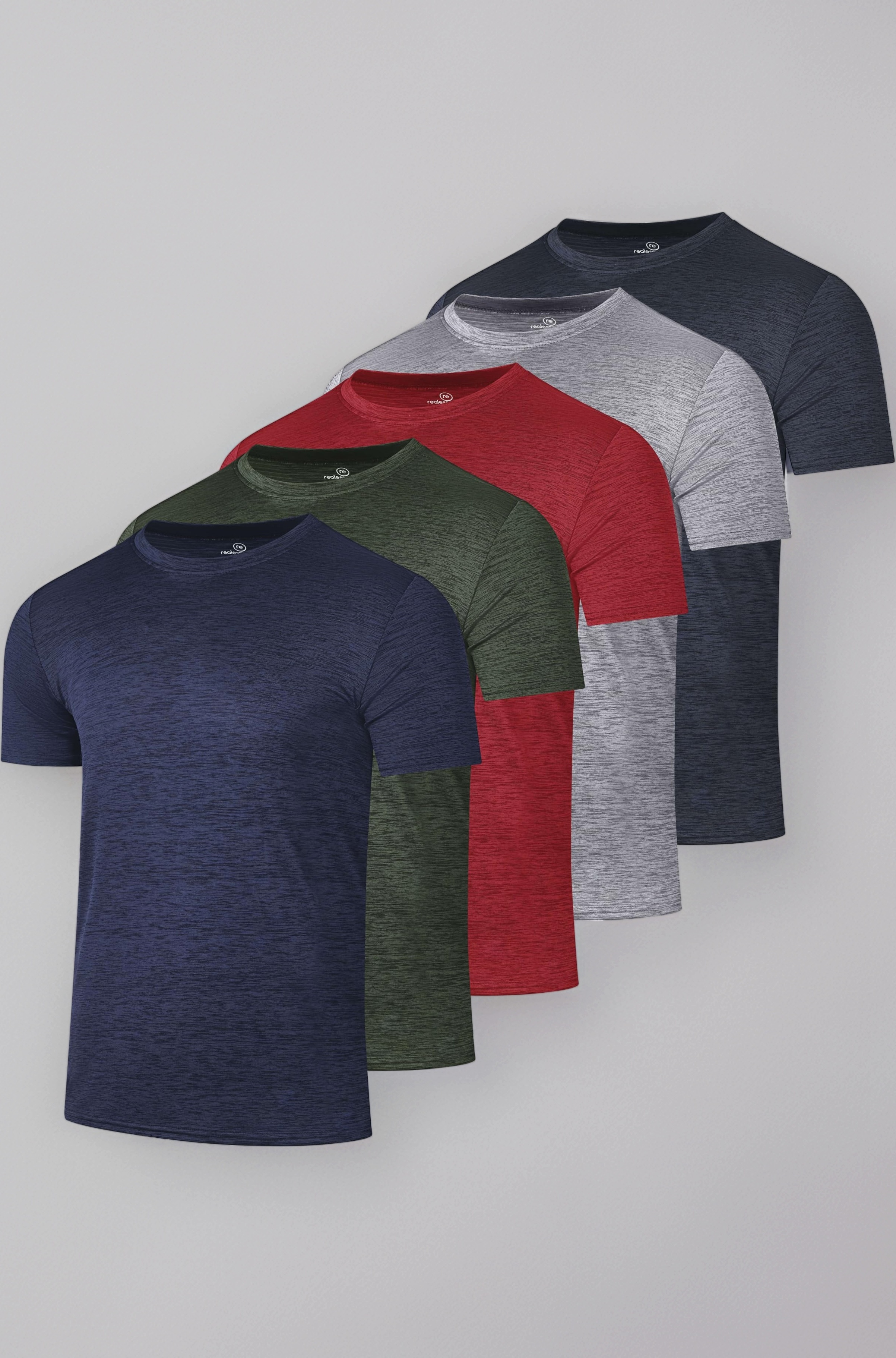 The Real Essentials 5 Pack Men’s Dry-Fit Crew T-Shirts deliver moisture-wicking technology and a regular fit for versatile, all-day wear. Made in the USA, these machine washable tees combine durability with comfort, making them ideal for active professionals seeking reliable performance and style in their wardrobe staples.