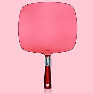 MIRRORVANA Large Hand Mirror with Comfy Handle - Big Handheld Mirror for Barber Shops, Hairdressing, Dental Offices, Home Self Hair Cutting and Make Up Application, Sparkling Red