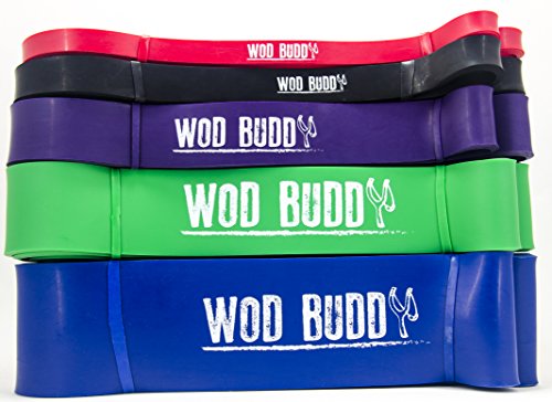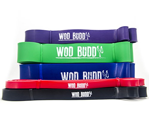 Get into the best shape of your life with your WOD Buddy. The Variable Resistance of WOD Buddy Bands exert maximum resistance when fully stretched, targeting your muscles at the end of the movement right when they need it most. Need some help getting started with chin ups, pull ups and ring dips? Check out our sizing chart and get the perfect bands for your body. Want to increase your reps for pull ups, chin ups and ring dips? Don't limit your progress, these bands will allow you to push yourself harder and farther than ever before. Instead of being limited by the number of unassisted reps you can do, you'll be able to do pyramid sets & burnouts to accelerate your progress. LIMITLESS POSSIBILITIES ►Assisted Pull Ups / Chin Ups / Ring Dips ►Travelling ►Stretching ►Powerlifting ►Bodybuilding ►Strength Training ►Training Past Failure ►Endurance Training & More! TOUCH THE QUALITY All of our bands are made with an extremely tough 3/16" thick Premium Natural Latex. The bands can be safely stretched up to twice their original length without breaking. SPECS AND SIZES All Bands are 41" in Length and 3/16" in Thickness #1 RED - 10-35 lbs Resistance, 1/2" Width #2 BLACK - 30-60 lbs Resistance, 3/4" Width #3 PURPLE - 40-80 lbs Resistance, 1-1/4" Width #4 GREEN - 50-125 lbs Resistance, 1-3/4" Width #5 BLUE - 65-175 lbs Resistance, 2-1/2" Width STAY IN SHAPE WHILE YOU TRAVEL Our bands conveniently fold into a compact bundle that's ideal for throwing into a backpack or taking with you on vacation. Stay in shape wherever you go! SAVE NOW Collect the full set and take your gym with you! Save 50% off the retail price by buying direct from the manufacturer. Click the Add to Cart button now to secure your discount while supplies last!