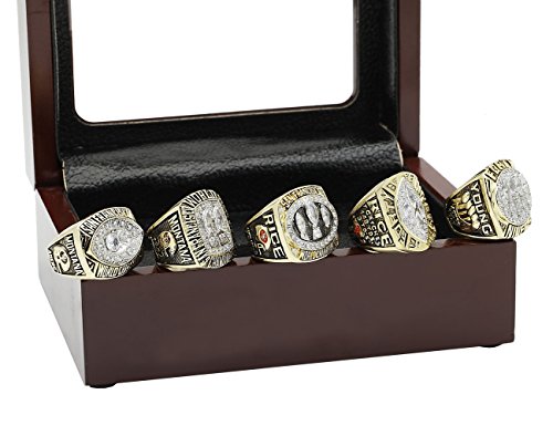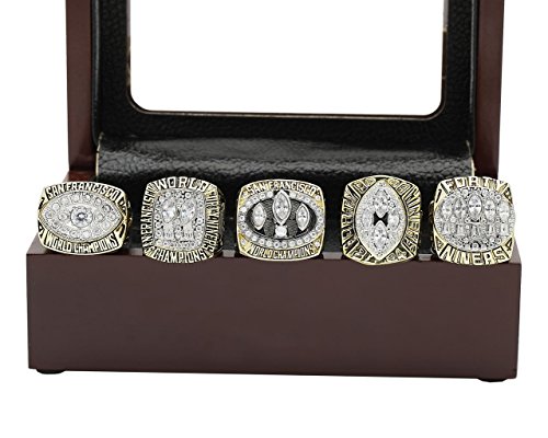 The ring is made of zinc alloy and crystal stone, and crystals were selected and inlay on the top of every Championship Rings.The display box set which is include 15 teams that hold over two championships since from 1966 to 2014 of last five decades. They are Green Bay Packers,St Louis Rams,San Francisco 49ers ,Oakland Raiders, Pittsburgh Steelers,Denver Broncos,New England Patriots, Indianapolis Colts, Miami Dolphins,New York Giants,Washington Redskins,Buffalo Bills,Chicago Bears,Baltimore Ravens,Dallas Cowboys .