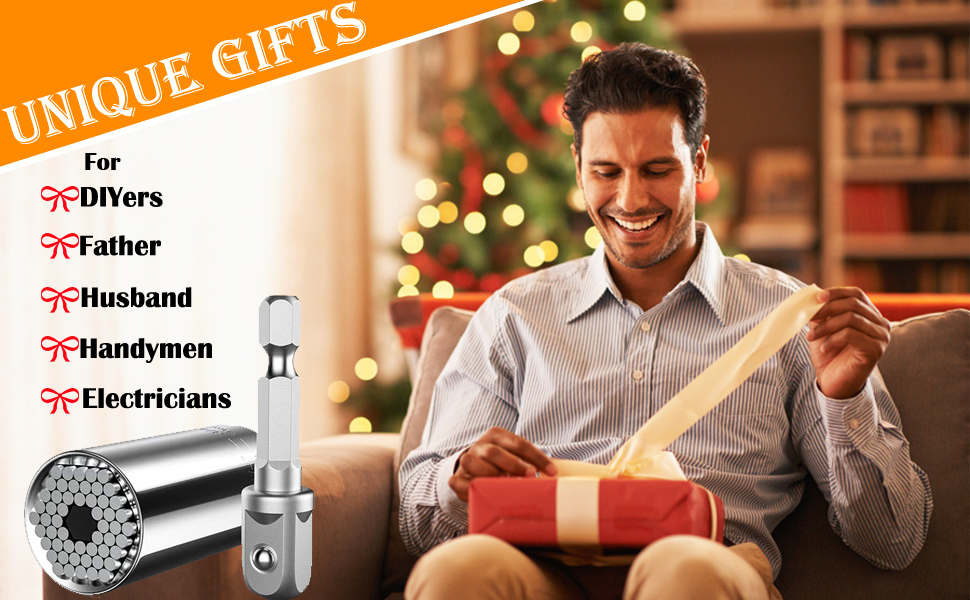 The Universal Socket by Mofeetools is a self-adjusting tool that fits a wide range of nuts and bolts, from 1/4'' to 3/4'' and 7mm to 19mm. Made from durable chrome and stainless steel, it features 54 individual hardened steel spring pins that adapt to various shapes, making it an essential tool for professionals and DIY enthusiasts alike. Perfect as a gift for any occasion, this socket comes with a power drill adapter for added convenience.