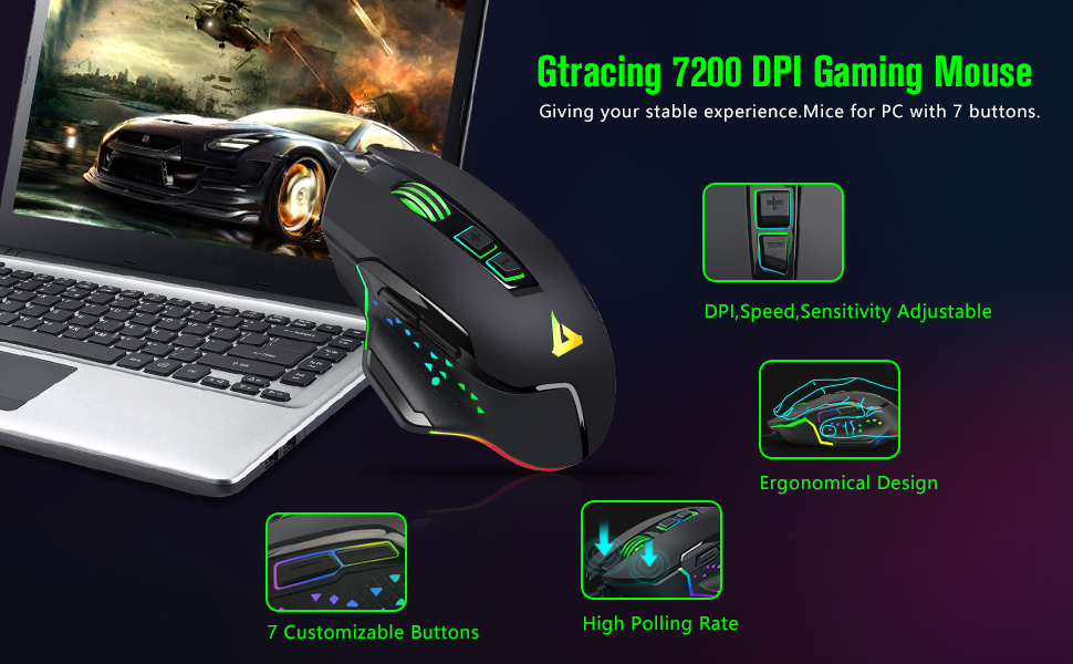 Gtracinggaming Mouse Wired 7200 Dpi Adjustable 7 Programmable Buttons Rgb | Desertcart SINGAPORE