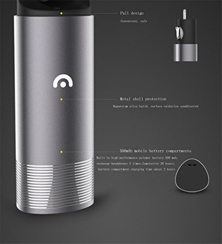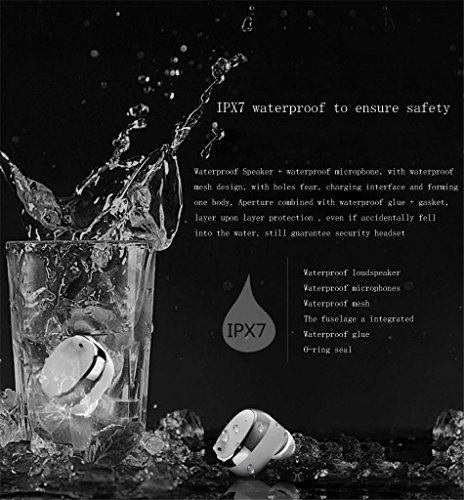 Product highlights: Large-capacity high-performance lithium polymer battery Charging the battery compartment 5 times to headphones Mini wireless Bluetooth headset Stylish metal case design Intelligent noise reduction and echo cancellation IPX7 waterproof It weighs just 4.7g Product parameters: Product Type: Mini Bluetooth Headset Wearing styles: in ear Bluetooth Version: 4.1 Transmission range: Accessible ≤10 m Noise: DSP intelligent noise reduction Battery type: high-energy polymer Headset Battery Capacity: 60mAh Battery compartment Battery Capacity: 500mAh Waterproof: IPX7 waterproof Working time: 4 hours Cumulative Working Hours: 15 hours (5 times the battery compartment for charging the headset) Standby time: 7 days Charging time: 1 hour (headphones) 3 hours (battery compartment) Size: 21 * 17 * 24.5mm (headphones) 29 * 29 * 70mm (battery compartment) Products include: 1*Headset 1*Battery compartment 1*Charging Cable 1*Instructions