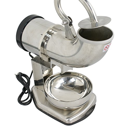 Low Maintenance: You can flush the hopper, blade and holding bowl with clean water and towel them off after shaving. Simple & Convenient Operation: Just drop the ice in the hopper, push the handle, and shaving work done! Anyone can do it Technical Parameters: Rotated Speed: 2500 runs/min Shaving Capacity: 440 lbs/h Voltage: 110V Power: 250W Frequency: 60Hz Weight: Approx. 17.6 lbs Package Content: 1x Ice Shaver Machine 1x Stainless Steel Vacuum Bowl 1x User Manual Start enjoying the fun of making and tasting slush & drinks anytime in the convenience of your own home or to make profits in your own management! Perfect to Produce Hand-made Slush & Frozen Drinks for Fast-food Store, Snack Bar, Cafe, School Canteen, Clubs or Restaurant, Carnivals, Banquets or Festivals. Ideal for Home or Commercial Using !!! Apply to Anywhere People Gather to Have Fun and Enjoy the Cool Feeling Shaved Ice Brings About!