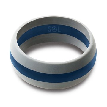 Silicone Wedding Ring By SOL (Action Pro Series), Safe and Sturdy Silicone Rubber Wedding Band Designed for Fitness, Kettlebell and Exercise Bands Workout - Light Grey with Blue, size 13