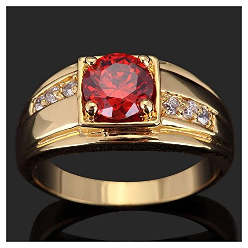 Ruby Jewelry Garnet Men Ring CZ diamond 18 K Gold jewelry Rings for men Ring Ring Size:10 Main Stone Color:Red Metal Color:18K Gold Plated