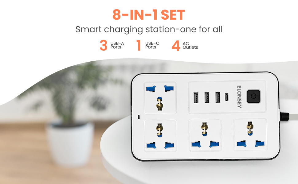 Elonsey Universal Power Extension Cord With Usb C 4 Way | Desertcart SINGAPORE