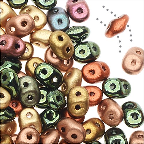 SuperDuos 2-Hole Seed Beads. 5.5 x 2.5mm. 24 Gram Tube (Approximately 360 Beads). These Czech glass beads are pressed for a uniform shape and size with a tapered design. The profile of the SuperDuo is much like an inverted hourglass, tapering at the ends and widening in the middle, and create a "honeycombed" or diamond pattern when stacked together. Their large hole size to bead size ratio makes them ideal for consistent bead weaving texture and multiple passes of fine beading thread, such as Fireline, Power Pro, KO Thread and Nymo. Create beautiful textures with the multitude of colors available! Measurements: 5.5mm long, 2.5mm wide (along string), 3.5mm thick. The two holes will accommodate wire or thread up to 20 gauge (.032") thick.