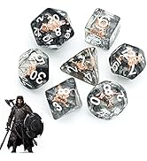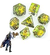 These are really good looking dice and they feel nice rolling them. The colors pop very well. The points are a little Sharp but I find that is positive based on the theme of the dice. The only issue that I have with them are the numbers are kind of difficult to read, if they were painted a brighter color it would make these dice better.