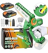 The Tomyvic Electric 6 Inch Mini Cordless Chainsaw is a lightweight, battery-powered tool designed for efficient trimming, pruning, and light wood cutting. Equipped with dual 2000mAh lithium-ion batteries and a powerful 550W copper motor, it delivers up to 30 minutes of runtime and cuts branches up to 4 inches thick. This all-in-one kit includes essential accessories and safety features, making it perfect for DIY enthusiasts and homeowners seeking a portable, easy-to-use outdoor power tool.