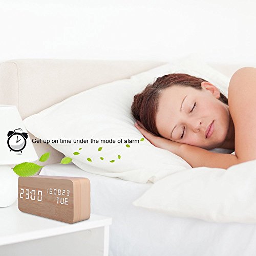 1.Function: Alarm Function.Let you get up on time. 3-level brightness adjustment and 3 groups of alarm settings. Time & Temperature Display and Voice Control Function. Powered by USB cable or 4 x AAA batteries.(Include the USB cable but Not include the batteries) 2.User Instruction: In the normal display state, long press the "SET" button for 3 seconds, then the display would flashing. The setting order is: Year-month-date → 12H/24H → Hour-minute → Alarm clock(A1-hour-minute, A2-hour-minute, A3-hour-minute) → Work day alarm clock switch. Temperature format setting: In the normal display state, press "UP" to adjust the format of temperature "C" or "F". Sound control setting: In the normal display state, press "DOWN" to choose open or close the sound control function. "ON: sd" means the sound control is open; "--: sd" means the sound control is closed. Brightness adjustment: In the normal display state, lond press "UP" for 3 seconds, "DOWN " reduce brightness, press "UP" increase brightness. Reset button: When the clock crash, you can press the "RESET" button in the battery jar to reset. 3.Specification: Type: Alarm Clock, Table Clock Style: Fashion, Modern Time Display: Digital Material: PVC Wood Powered by: USB Cable(not include adapter), 4 x AAA Battery (not included) Color: Beige 4.Package Includes: 1 x Led Alarm Clock 1 x USB Cable 1 x user's manual
