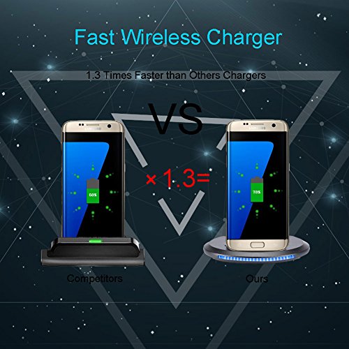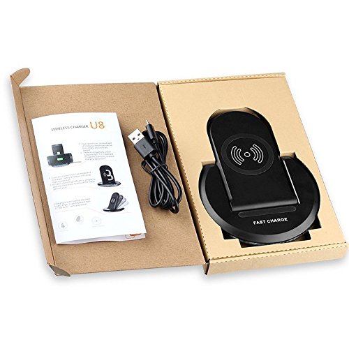 Wireless Charging Convenience Say goodbye to tangled wires and lost charging cables.The QI charger stand is always ready, providing wireless power whenever you set your device on it. LED Indication Standby: Red light is always on. Charging: Identify receiving then the blue breathing light turns on for 1 minute and then goes off. Full: Red light is always on. Foreign body / overheating protection: Blue and red light flashed quickly. Applicable Models for Fast Charge Samsung Galaxy S8, S8 Plus, S6 Edge+, S6, S6 Edge, S7, S7 Edge and Note 5. Specification - Product Type: U8 Wireless charger - Input Parameter: 5V/2A, 9V/1.67A (Qualcomm QC agreement charger) - Output Voltage: 5V/9V - Max Efficiency: 80% - Output Current: 1100mAh - Output Power: 10W - Product Size: 160x116x14mm - Charging Distance: ≤5mm - Working Frequency: 110-205 KHz - Wireless Charging Agreement: WPC 1.2 standard Tips - Please use a qualified QC2.0 power adapter, otherwise it may cause the charge to be unstable. - Do not put metal debris or magnetic card on the charging board, may cause damage to the charger or abnormal. - The use of the process it the receiving coil or the launch plate overheating lead to stop charging, please remove the charging device, to be cooled, try to recharge. Package Include 1 x QI wireless Charger 1 x USB charging cable 1 x Manual Instruction