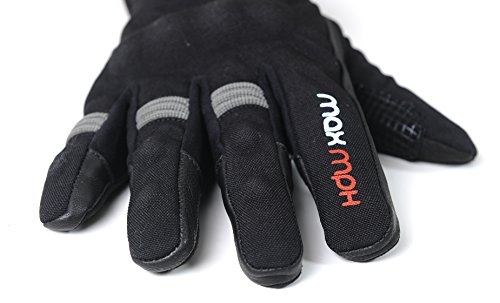 Made from a combination of textile and high grade leather for added protection and comfort Polar Tech Fleece lining Carbon fibre knuckle protection HiPORA waterproofing membrane. YKK zip with waterproofing seal MAX MPH logos throughout (see images) Cuff velcro fastner 3 sizes available; Medium, Large & X-Large. Please see product images for a sizing chart and further guidance About our company:The MAX MPH brand is owned by Moto Cento Ltd. The small business is run by two brothers (Andrew & Graham) who are both bikers themselves and look to provide credible alternatives to the 'big brand' motorcycle and scooter clothing. The quality clothing at reasonable prices is backed up with great customer service from sizing advice through to easy returns. Please also see our listings for other motorcycle and scooter clothing or drop us an email if you have any questions.