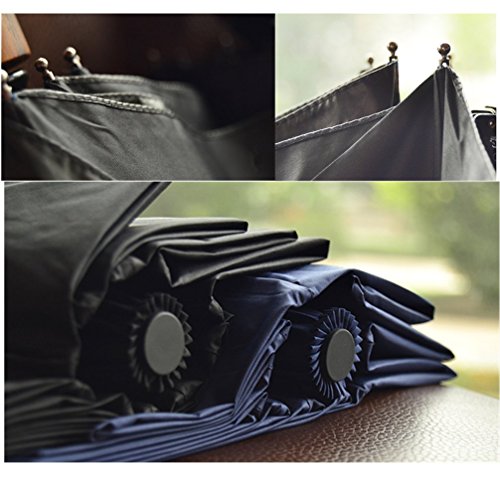 You will love this umbrella! One button to open and close, so easy to use and compact! you've never had an umbrella as good of quality as this one! It would be great for traveling, keeping in your car, or for an everyday umbrella.Benefits & Features:1.Classic folding umbrella adopts high quality aluminum frame, strong windproof design2.Automatically open and close the umbrella easily, just press the button. 3.This umbrella has a really convenient design and compact size, perfect for carrying around or sticking in your handbag when on the go.4.Material : Use high quality Stainless Steel frame+ nanometer fiber cloth 5.Size : 40" x12" (diameter x height)6.Color : Black, Blue 7.Ultraviolet (uv) : strong uv. SPF: UPF > 40+