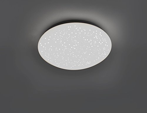 Description Elegant RGB LED ceiling light with starry-look. With its simple design of plastic and steel, this luminaire is suitable for use in almost every living room. Despite its rather simple design, it is still a real eye-catcher, because the many translucent points create a light-play, in which it is as if stars sparkle. In addition, this lamp has a color changing mode which allows you to adjust the red, blue, green light, as well as the slow color change, instead of warm-white light. Also a nightlight function is another special feature of this modern ceiling light. Using the included remote control, you can adjust or dim the luminaire in various colors, thus ensuring a perfect lighting. Compared to normal luminaires, LED spotlights consume a minimal amount of electricity and are even consumed under energy-saving lamps. This is already the environment and your purse. A high-quality, energy-saving LED bulb is included in the delivery. Details Light o Light type: ceiling lighto Frame: steelo Lamp screen: plastic, whiteo Remote Controlo Color changero Dimmable (100%, 60%, 40%, 10%)o Nightlight functiono Dimensions diameter in cm: 26o Suspension in cm: 9 o Socket: 1x LED boardo Lamp included: Yeso Power: 1x 8 wattso Luminous flux: 1x 615 lumenso Light color: warm whiteo Power supply: 220V to 240V, 50Hz to 60Hz o This luminaire is suitable for lamps of energy classes: A ++ to A (on a scale from A ++ to E)o This fixture is sold with energy class lamps: A + (on a scale from A ++ to E)o The lamps in the luminaire can not be replaced. Details Light source o Lamp type: LEDo Socket: LED boardo Energy efficiency class: A + (on a scale from A ++ to E) o Luminous flux: 615 lm (lumen)o Energy consumption: 8 kWh / 1000h<b