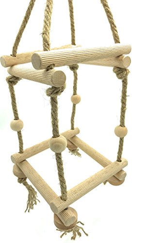 Lovingly, a hand-made, 2STUFIGES Conductor scaffolding for your birds. Fun and Games. Careful attention to seduce not just the 4 Beech Wood Balls and 4 wooden discs, but gentle on its own the frame, which is thanks to the mounting constantly on the move. We have from the finest and highest quality raw materials. So if the frame Beech wood ribbed (18 mm), hemp rope (8 mm) you have can constantly gnawing, and of the hanger, made of stainless steel. The lobster clasp allows you to customize the simple, tool-free mounting on the cage. This frame is the ideal supplement for the home your feathered friends. Even thought of the health has been, we use no toxic Zinc Coated parts. All metal parts are made of stainless steel. The ribbed rods serve perfectly to natural wear and tear of claws and beak.
