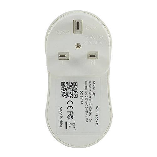 Specifications: *Input voltage:AC 100-240V 50/60HZ *Max rating:10A *Output voltage:AC 100-240V 50/60HZ *USB charger:DC 5V 1A *Wifi standard: IEEE801.11b/g *Operation frequency:ISM BAND,2.412-2.484GHZ(Depends on country region) *Security:Mac encryption; WEP/WAPI/TKIP/AES *Static Power: *Working Environment: 1)Temperature:-20 to 70℃ 2)Humidity:10%-95% Features: * Remote control-anywhere&anytime * With the function of feedback, you can check the power state of devices in the software. * Timing function. *Appointment function. * Sharing device control to others. *One APP can support 150pcs of smart socket. * Easy to install and use. *Can be applicated to fans, lights, water heaters, fountain etc. Package included: 1 x WiFi Smart Power Plug 1 x User Manual Product Dimensions: 5 x 3 x 2.5 inches Color: White Batteries Included: NO Batteries Required: NO