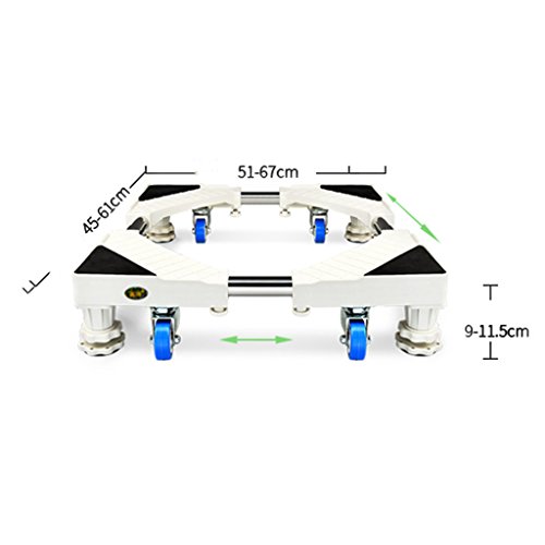 The Multi-functional adjustable mobile base for dryer,washing machine and Refrigerator is a high performance products. You can put your dryer, washing machine and refrigerator on this Multi-functional base easily and safely. It is made from aviation aluminum alloy plus high strength plastic steel. It is easy to assemble.Style positioning: economic typeDesign elements: other metalsSeat shape: special shapePattern: OtherStyle: simple modernmaterial: stainless steelWhether it can be customized: NoApplicable to: adultFeatures: Easy to move and cleanExtensible Length Size: 51cm - 67cm AdjustableExtensible width Dimensions: 45cm - 61cm AdjustableTips:1. The size and adjustable range of this base have been shown in the pictures.Please confirm if the size of your machine is in the adjustable range before you buy it.2. Any problem, feel free to contact us. We will reply you as soon as possible.