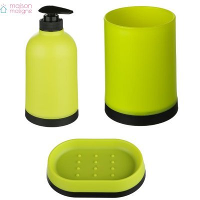 Set/Set/3 Piece Bathroom Accessories (Soap Dish, Soap Dispenser and 1 cup). green