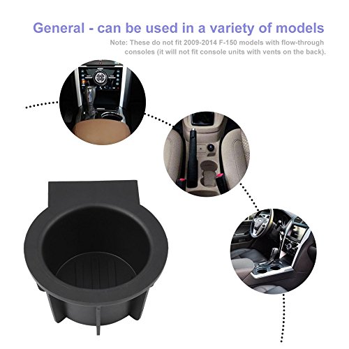 Features: Premium new cup holder inserts (for front floor center console) Materials: Heavy duty premium automotive grade thermoplastic Premium quality, brand new black cup holder inserts! Designed as a direct replacement for your broken or missing cup inserts. install it yourself, and save bigtime! Includes two front cup holder inserts for floor console. Easy Installation. Note: These do not fit 2009-2014 F-150 models with flow-through consoles (it will not fit console units with vents on the back). Specifications Color: Black Materials: Heavy duty premium automotive grade thermoplastic Size: 120x110x59mm Net weight: 200g Package Includes: 2 x Front Center Console Cup Holder Inserts