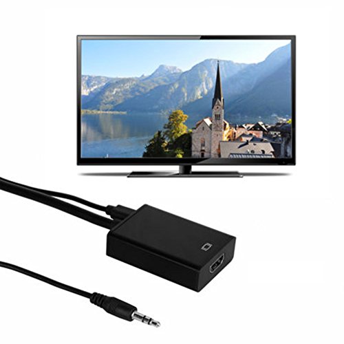 Convert analog signal( VGA ) to digital signal ( HDMI ). The audio is coupled with the VGA video signal, then audio and video are both converted to HDMI format. HDMI output : support up to 1080P / 60Hz ( output and input format synchronization, frequency synchronization). It applied to the desktop computer, laptop, DVD, Set TOP Box, player and so on VGA signal resource input. Easy to install, no need to driver plug an play. This product with the chip, and need external power source, the operating current: 170mA, the universal USB cable supply to demand normal work. Important Note: converter is NOT bi-directional. It only converts from VGA to HDMI. This converter can not be used between the desktop with VGA and laptop with HDMI, as both of them are output signal so it will do not display! How to Use 1. Insert the VGA interface into the computer or other equipment with the VGA output. Please check VGA signal output well. 2. Plug the USB cable connector into USB port to be offered power. 3. Plug 3.5mm audio connector into audio port. 4. Insert other connector into the HDMI cable, and then connect the HDMI cable to the displayer and the projector device with the HDMI interface. 5. Play the video, PPT and documentation, the image will display on the screen of the other display device.