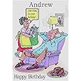 This Andrew birthday card will delight the recipient as people love to see their own name on a greeting card. The card measures 5.5 inches (14cm) wide by 8 inches (20cm) deep and is standard UK letter size. The message on the front of the card is 'Andrew, Just relax, it's your birthday, Happy Birthday' and the inside of the card says 'Happy Birthday'. The card is made from 260gsm glossy card with a 140gsm inner flap for writing a further message. A 100gsm white envelope is also provided.