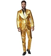 The OppoSuits Men's Prom Suit Pac-Man is a slim-fit, machine-washable polyester suit featuring a vibrant, retro arcade-inspired design. This complete set includes a blazer, pants, and tie, tailored for a modern, flattering fit. Perfect for game lovers and partygoers alike, it’s designed to make you stand out at proms, festivals, and themed events while offering easy care and durable wear.