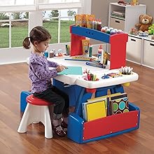 The Step2 Creative Projects Table is a spacious, sturdy activity table designed for children aged 3 to 8. Featuring a large 130.2 x 98.4 cm surface, removable storage cups, repositionable shelves for dual seating, and two ergonomic stools supporting up to 75 lbs each, this vibrant plastic table keeps art supplies and toys organized while encouraging collaborative creativity. Made in the USA and requiring adult assembly, it’s the perfect centerpiece for any playroom or creative space.