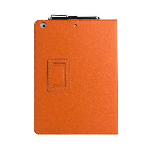 ADENTO IPAD AIR CASE:Fitted iPad Air Case in Orange with elegant stiching specially made for the Apple iPad Air. This case is made of sturdy PU leather which is more durable than regular leather, and features fine stiching along the edges for extra protection with subtle branding on the front cover. On the inside, a velvet like Nubuck material will protect your iPad Air against scrapes or scratches while a velcro strap will keep it securely in place at all times. An elastic hand strap has been added in order for you to hold your iPad Air comfortably using only one hand. The cover can be used as a stand, offering you three positions for typing more egonomically or viewing pictures or watching movies at different angels. The Smart Cover will put your iPad Air to sleep when the cover is closed and wake your tablet upon opening it. Use the integrated stylus loop to store a pen or stylus (Stylus not included). All ports remain accessible while the iPad Air is covered by this case, including the speakers and both cameras. Whether you use your iPad Air at home or on the go, this cover will effectively protect your tablet against dirt, shocks or scratches.Features:- subtle, fitted Protective Cover in orange with white stiching specially made for the Apple iPad Air- Smart Cover supports the Sleep & Wake function- Stand features three angles for a more egonomical typing position, and to view pictures or watch movies in comfort- integrated Hand Strap allows you to hold your iPad Air comfortably using only one hand- with Stylus loop (Stylus not included)- all Ports remain accessible, including the speakers and both camerasMaterial:- Outside: Sturdy PU Leather, washable- Inside: Velvet like Nubuck material to protect your screeniPad Air or Stylus not included.
