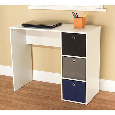 Description The TMS 96613WHT Standard Writing Desk, White/Blue, features engineered wood construction that enables it to withstand daily wear and tear. Use the sturdy and compact TMS Writing Desk to update the look of your study room, library or office. The sleek look of this table is enhanced by a wood tabletop, making it a perfect addition to any contemporary decor. This engineered wood writing desk comes equipped with convenient drawers that let you easily store and access important writing essentials. White desk with blue/black/gray drawers for a contemporary appeal Dimensions: 29.5"H x 35.5"W x 15.75"D Comes with 3 drawers for added convenience Engineered wood construction adds strength to the table Weight: 39 lbs. ⚠ WARNING: This product can expose you to chemicals including wood dust, which is known to the State of California to cause cancer. For more information go to www.P65Warnings.ca.gov/furniture Specifications Base Material : Wood Weight (lbs.) : 39 Furnishing Color : White Furnishing Material : Wood/Veneer Home & Computer Desk Type : Writing Desk Assembly Required : Yes Desk Top Material : Wood Keyboard Tray : No Number of Drawers : 3 Brand : Target Marketing Customizable : No Weight : 42.00 lbs. per Each
