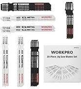 The WORKPRO 25-piece T-Shank Jigsaw Blade Set offers a comprehensive assortment of high-quality HCS, HSS, and BIM blades designed for wood, plastic, and metal cutting. Compatible with all major jigsaw brands, this set features a durable 5-point T-Shank interface for enhanced power transfer and includes a convenient storage case to keep your blades organized and accessible. Perfect for professionals and DIY enthusiasts seeking versatility and reliability in one sleek package.