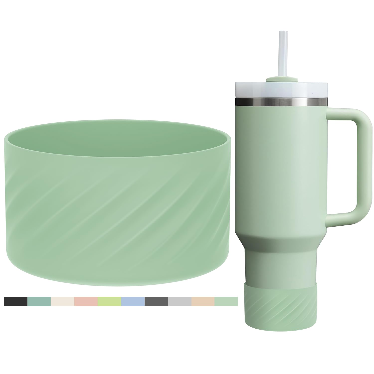 This silicone boot easily fit onto my Stanley 40oz cup. Previously, I could accidentally bump the table and my cup would slide a little. Now, with the boot, it grips the table, no budging. I'm very satisfied with how easy it is to hand wash and the color match. I'd recommend it.