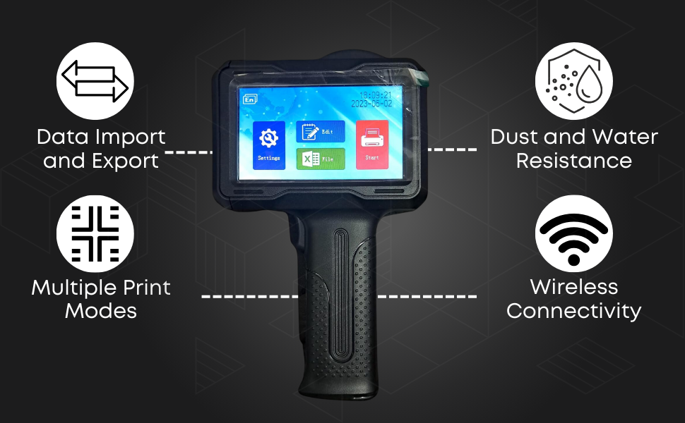 The A.C.I. PACKAGING Z90 is a compact, industrial-grade inkjet printer featuring a powerful 4-core CPU, a vibrant 4.3-inch color touchscreen, and 600 x 600 dpi resolution. Designed for versatile label and barcode printing, it supports multiple file formats and languages, making it ideal for fast-paced production lines and professional branding needs.